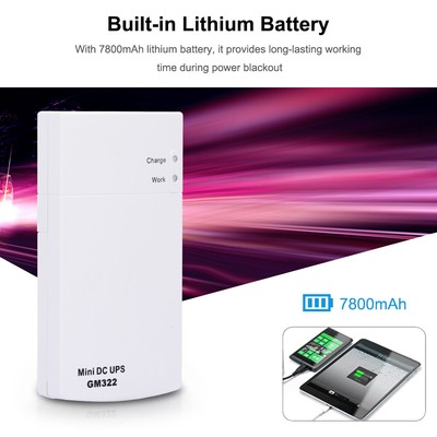 The GM322 is marketed as a mini-UPS and sold under other names as such. In its specification, the somewhat broken English says "Mini UPS can charge Router and light cat at the same time", which either means it transitions smoothly, or you can use it to make your cat glow.