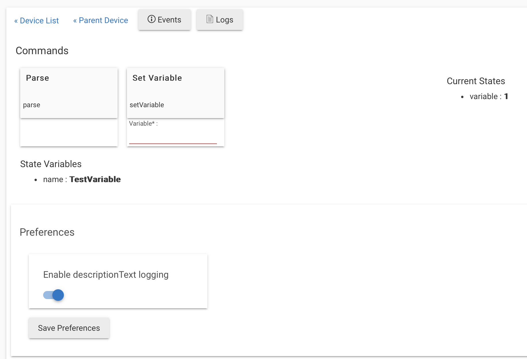 The only places that indicate the variable link is broken is under the variable connector device which shows "State Variables" with the original name, and the device page which has the original variable name in light gray below the variable connector device.