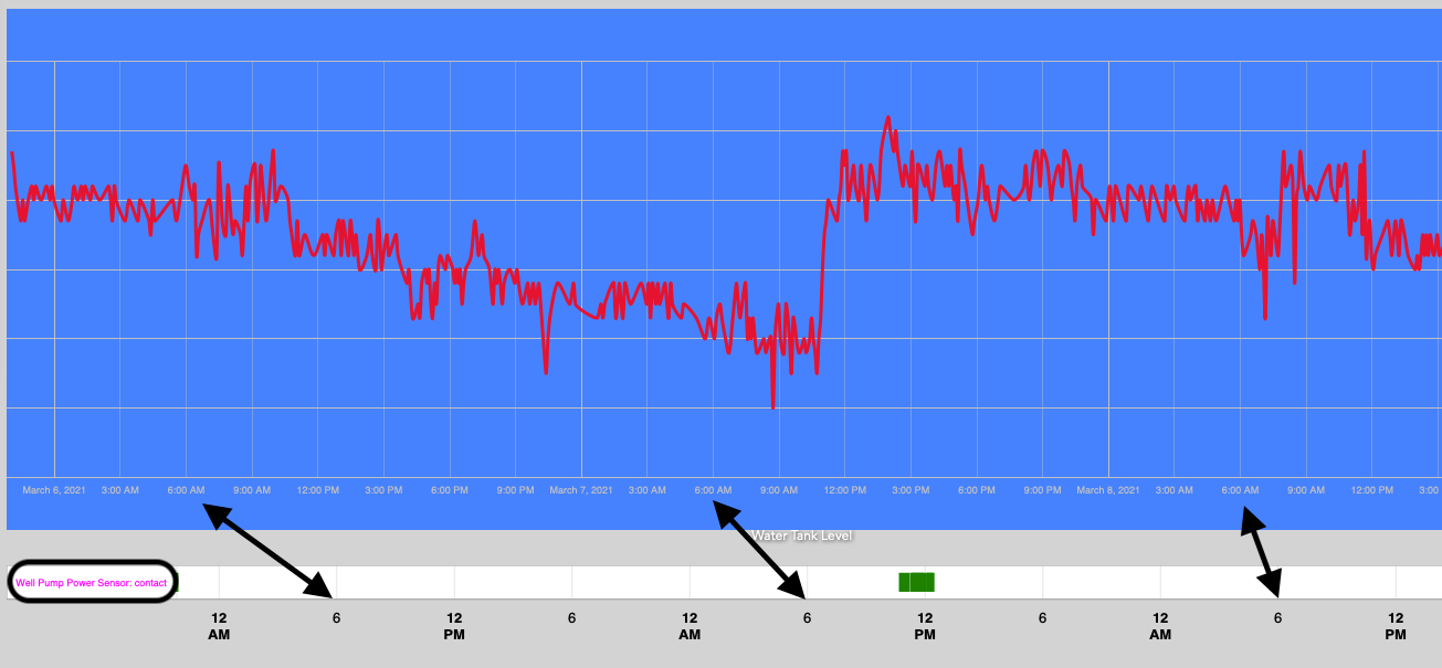 Just for reference the application here is to correlate pump activity (Time Line) with water level . One is a contact closure while the other is an analog level. My first impulse was to put them both on the same graph but I ran into issues with that as they are two different kinds of devices, so I separated them. (Time Graph)