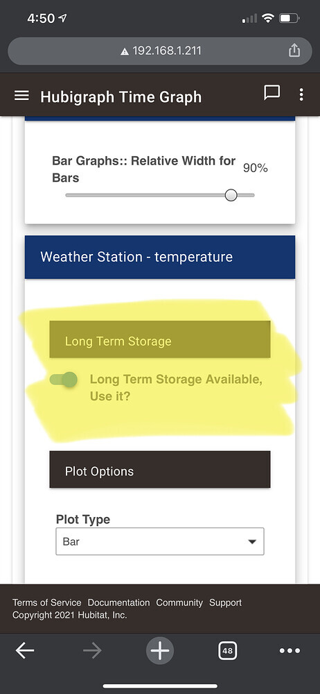 I didn't scroll up and read to see if you had done this yet, but I noticed that you're having the same trouble I was. If you had Hubigraphs installed prior to Hubitat version 2.2.6 you need to completely uninstall Hubigraphs and reinstall, then set up LTS for your values first, then the option will show up when you are recreating your graphs. I've just done this and the "Use Long Term Storage" option showed up.