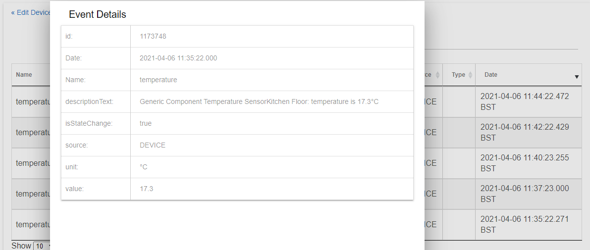 The device has state history set to 200 and the oldest data is longer ago than the graph will show (2021-04-06 11:35:22.000)