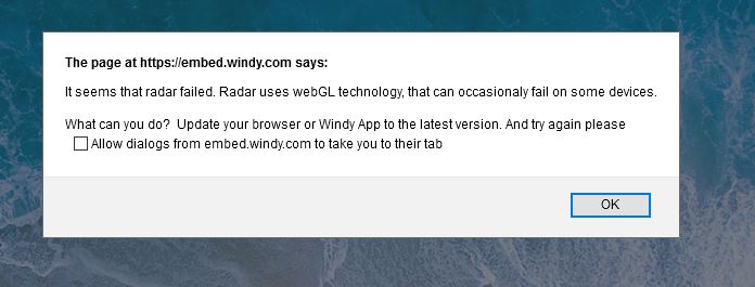 I actually tried checking the box to prevent dialogs, but they came back anyway when I refreshed. In thinking about it though, I'd imagine there must be a fix for this that I am unaware of. My browser is already the latest version of FireFox so perhaps the Windy app? I really have no idea how that part works. I followed the instructions and it does work, but is there maybe a new version of API and this app isn't using it yet? I really don't know.