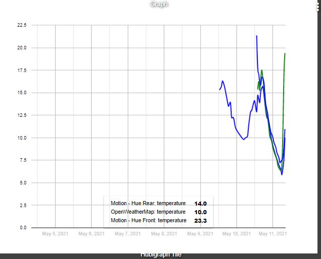 Can anyone give me a pointer on what changes i need to make to get the graph to pull in a longer history. The graph below is from 2 x Hue outdoor sensors giving temperature, and the OWM feed. The Hues are set to an event history size of 1000 at 0.5degree (c) intervals, but if i change this it doesnt seem to be affecting it?