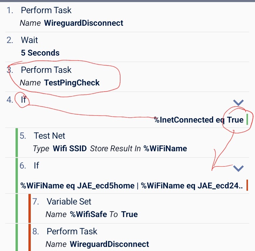 Call that task before you need to verify internet capability and use the results of the test to determine what to do. (i.e. No internet, flash a message and exit). In my case, whenever my wifi network disconnects, I wait a few seconds and then ping google. If successful, and I am not on my home network, then it connects wireguard. If I am on my home network (or other ones I have designated), it does not initiate wireguard.