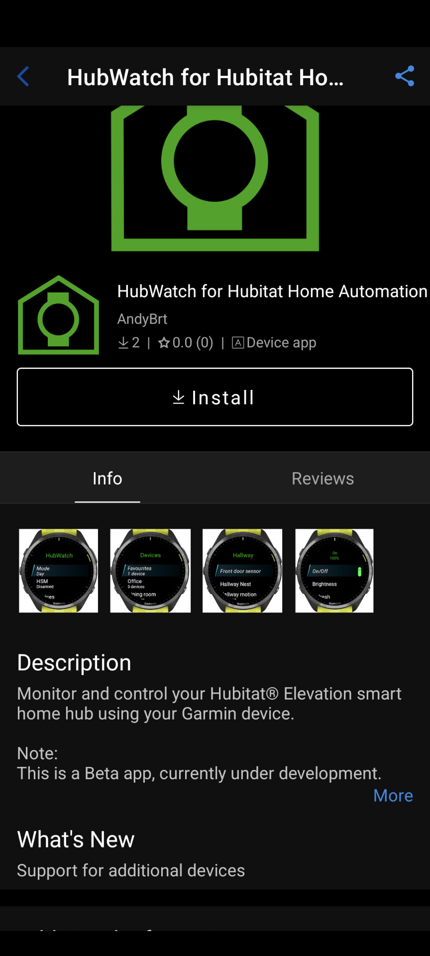 I've submitted the app to the Garmin Connect store. The current working title is "HubWatch for Hubitat Home Automation (Beta)" (a bit of a mouthful).