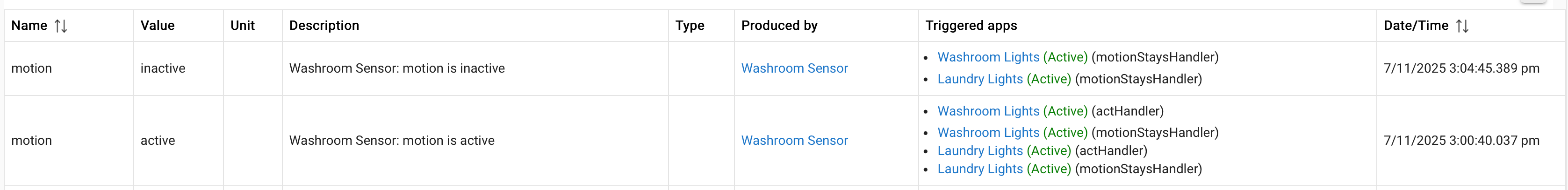 Yeah that is weird - I just went and triggered zwave 4 sensors, and only the washroom light turning on registers in the zwave logs. All the device events are there, and all automations worked correctly (the washroom light is the only zwave switch being turned on).