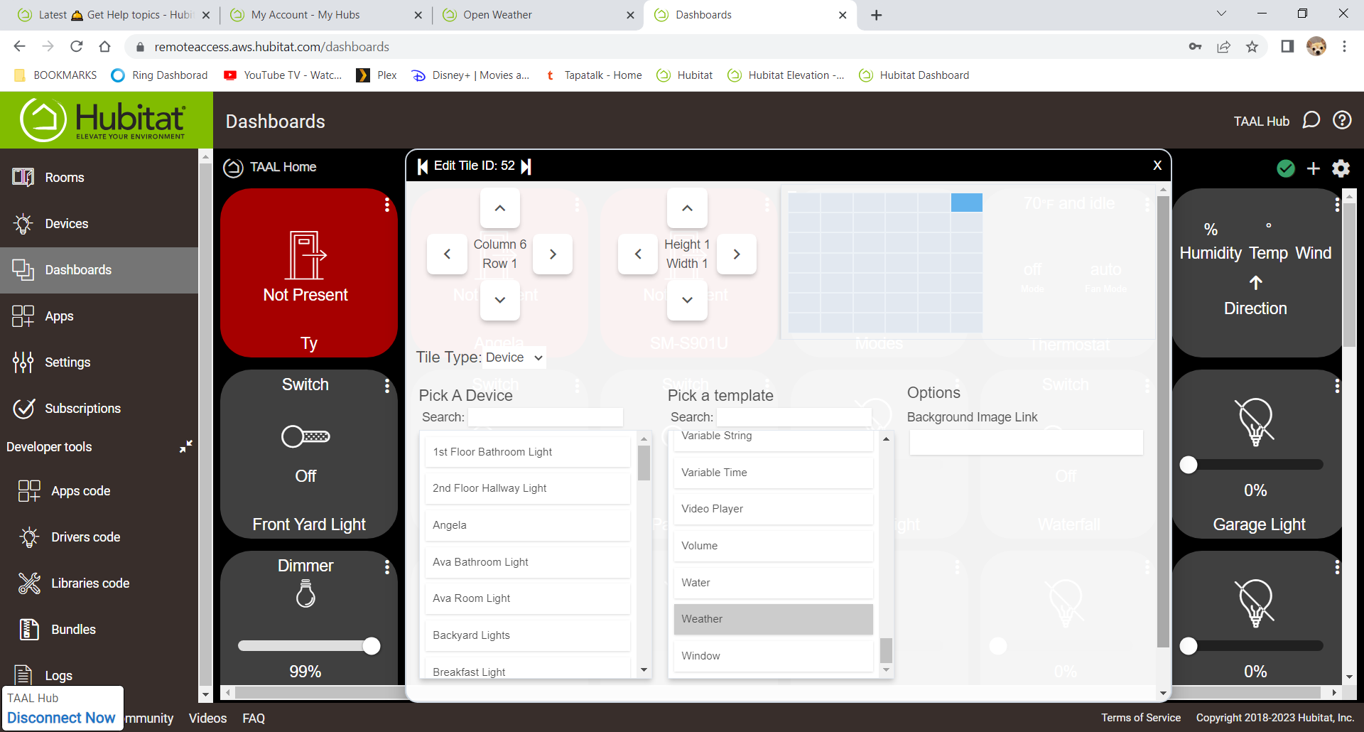 Question...I tried to create a tile in hubitat dashboard but I don't see any of the data coming in. Am I doing something wrong or did I miss a step?