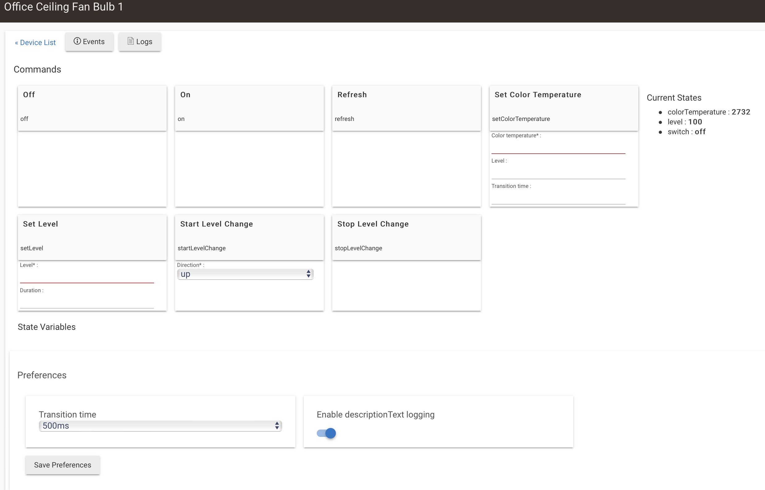 dev:3482023-01-17 08:32:16.051 PMinfoOffice Ceiling Fan Bulb 1 was turned off