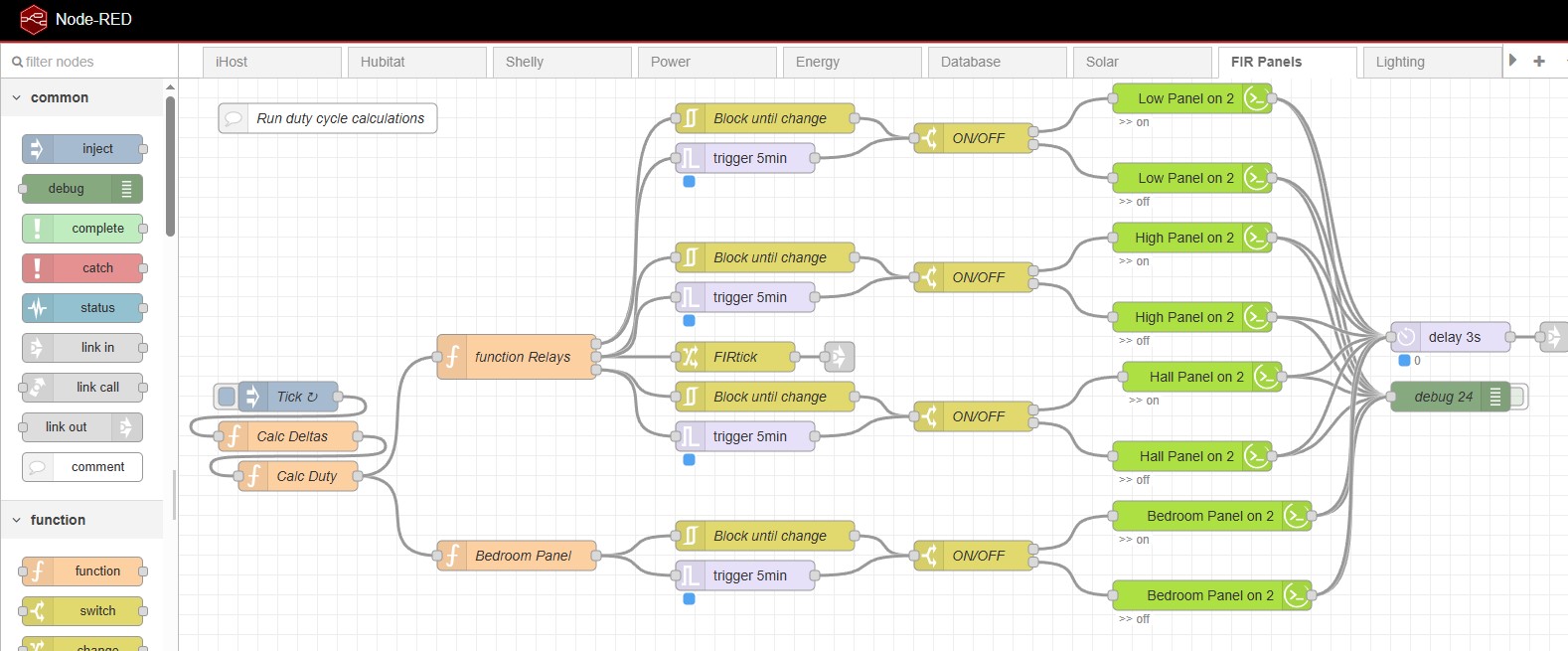 The flow below uses a two second tick so 100% duty cycle is 120 seconds. Seems to be a good compromise keeping the relays in the Tuya plugs switch too fast, while not letting occupants feel cold when the panel is not powered on its off period.