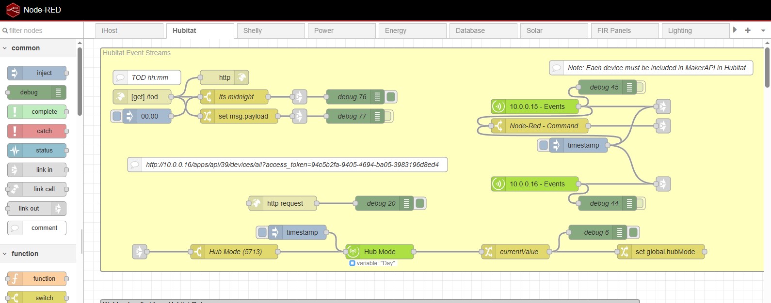 Note: I ams using a text widget on the Hubitat dashboard to embed a node red page.