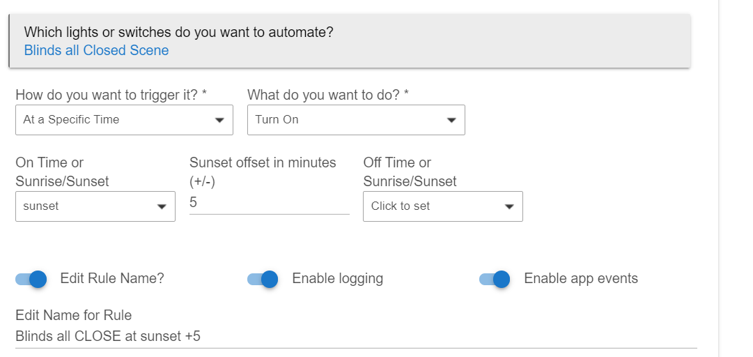 Hi there I am totally new to the Z WAVE automation and the Hubitat. I purchased and installed I blinds in January 2021 and have installed on Hubitat. I can control the blinds from the Hubitat portal but cannot figure how to automate. What app can I use? Modes, rule machine? I just want to open in the morning and close at night. Thank you in advance. Looking forward to learning more. Brian