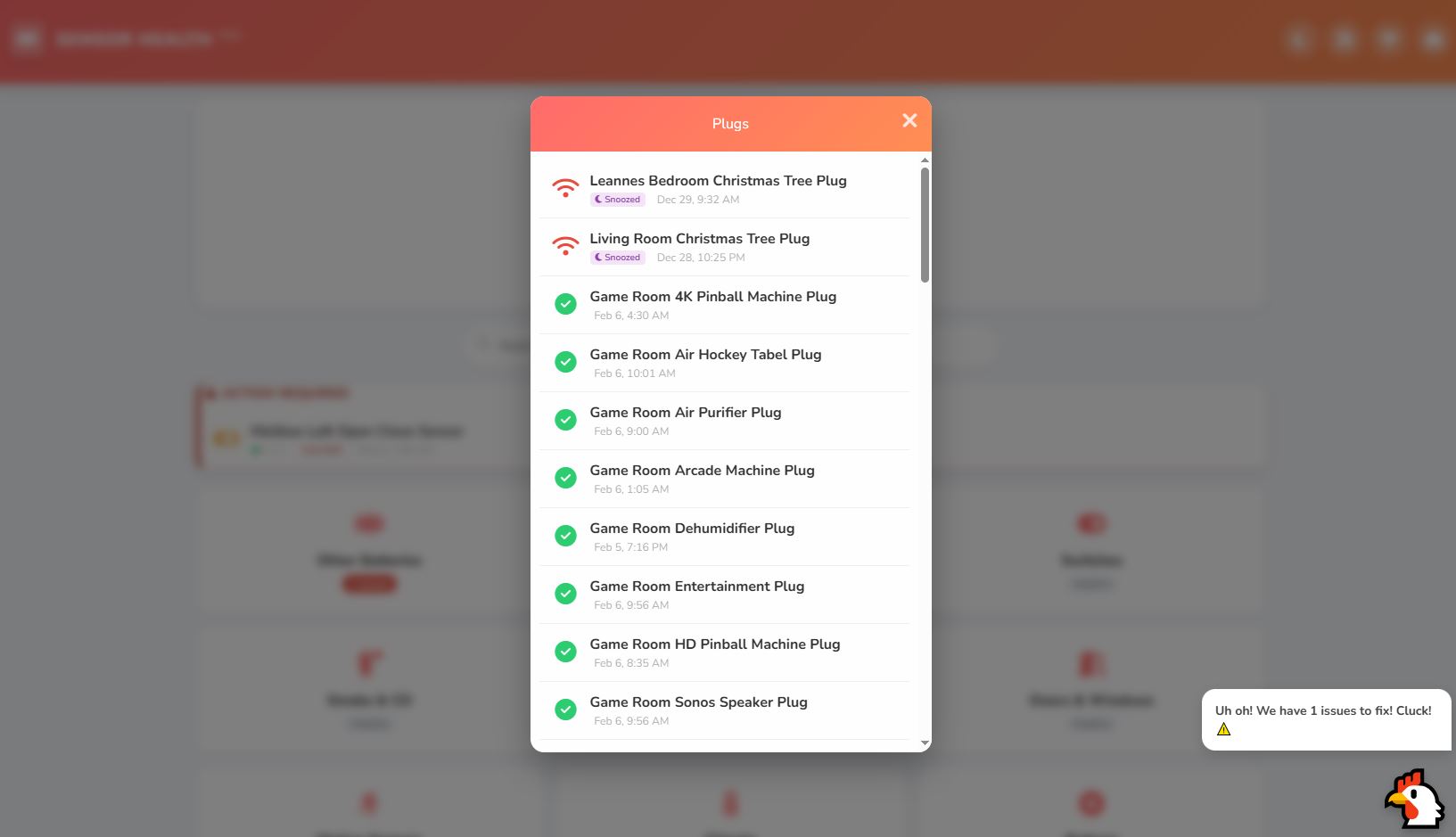 Snooze/Dismiss: If a device is dead but you can't fix it right now, you can 'Snooze' it for 2 days or 'Holiday Mode' it for 6 months so it stops cluttering your dashboard.