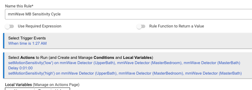 Funny you should ask...just re-initiated my rule to change sensitivities...was weekly, moving it to daily like yours. One sensor set to low and then back to high, another to low and then back to medium high, a third set to low and then to medium. I'll watch and learn...since I don't remember which of my sensors used to fall off I'm going to test the first three and if they all stay connected for a month or more I'll then try the setting changes w/the remaining four Linptechs I have.