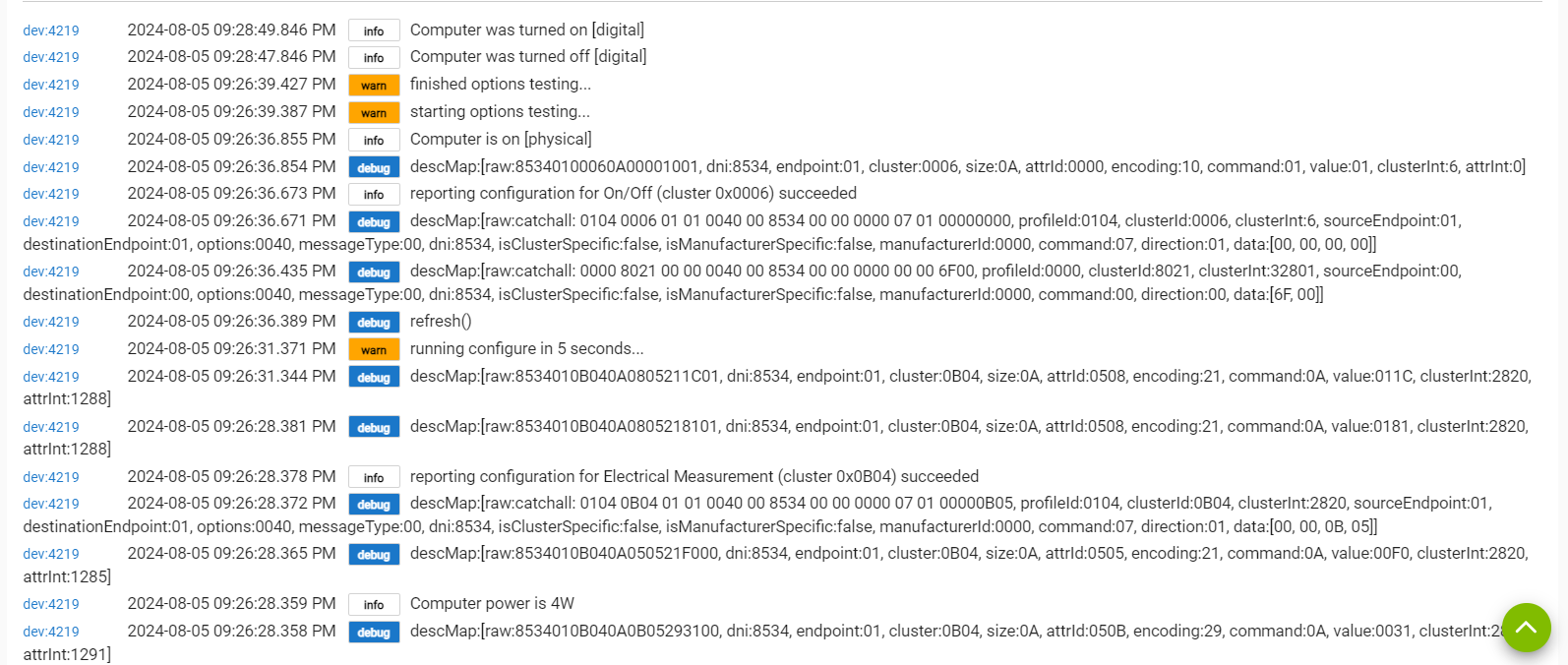 Does the HE inbuilt 'Device' driver 'Get Info' command show anything in the live logs?