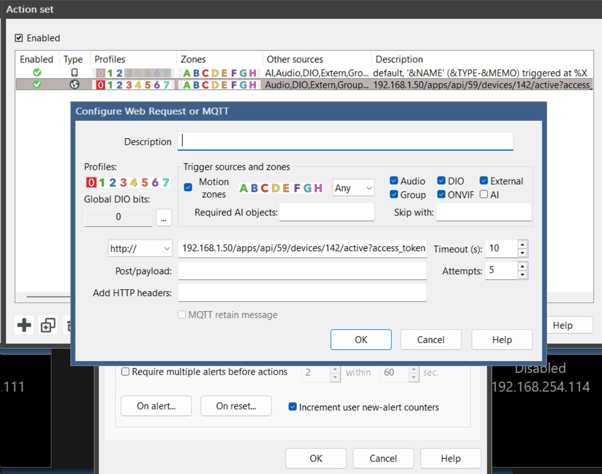 Makes sense now. I've never used MakerAPI before. A LOT of stuff online says start with Blue Iris to configure the alert then go into HE and add the device and then create the rule. That doesn't work because you need the ID for the device to build the URL in the BI alert. So you need to install MakerAPI, add the device in HE, then create the alert in BI, then finish with the Rule.
