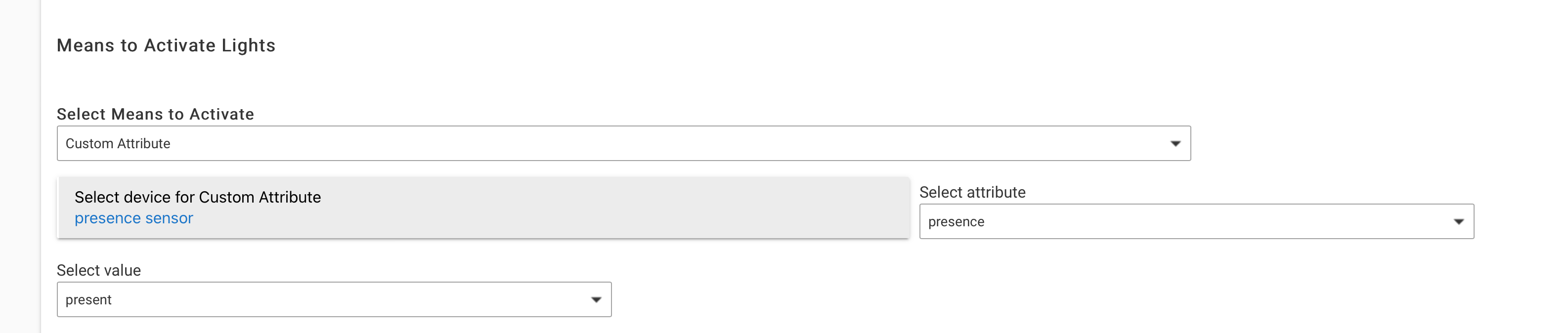 @JBrown's method is a lot simpler but can also use the Room Lighting app. Under "means to activate lights" you can select "custom attribute"