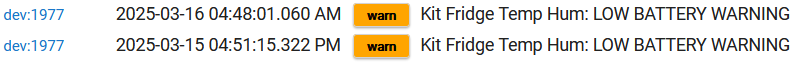 True. But I guess the question would still be how to access the "warn" log programmatically. I'm not pursuing anything aggressively at the moment. When they fail, I'll notice at some point. Nothing is mission critical, except the fridge temp, of course. ![]()