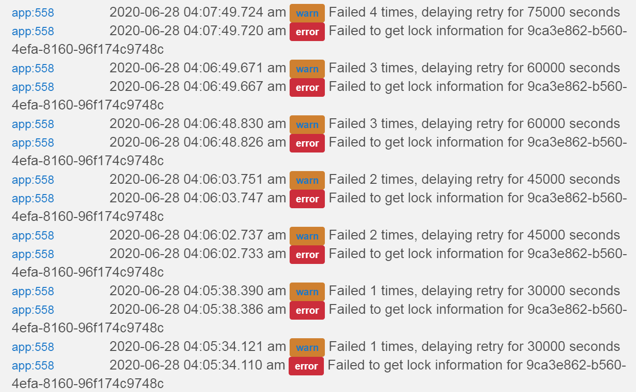 Unfortunately, that just means the Kevo servers were down. Their servers unfortunately seem to go down a bunch at night. The log message is wrong though, I need to modify it. It is waiting 75000 MILLIseconds, not seconds.