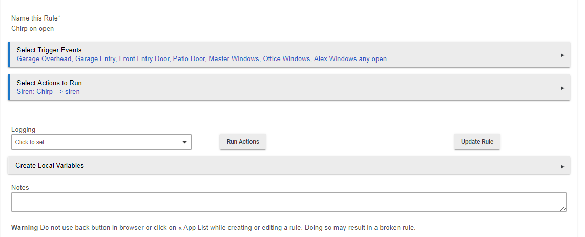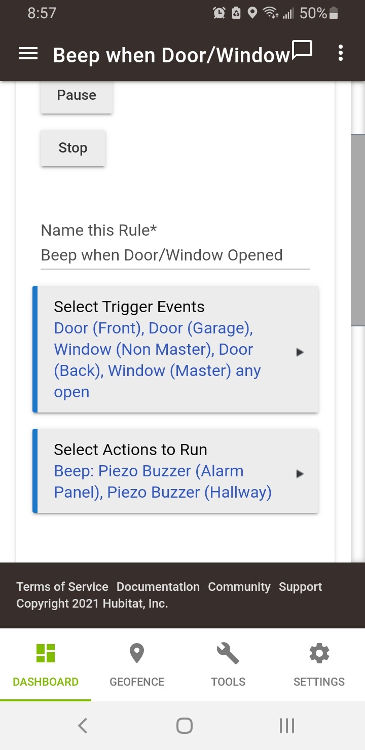 I am having issues where when I set this up, I am only getting beeps upon the first event of a door opening, but in order to get it to work after, I have to setup a new rule. I have no delays and nothing restricting or canceling it (that I know of). Any advice on things to check, @nate?