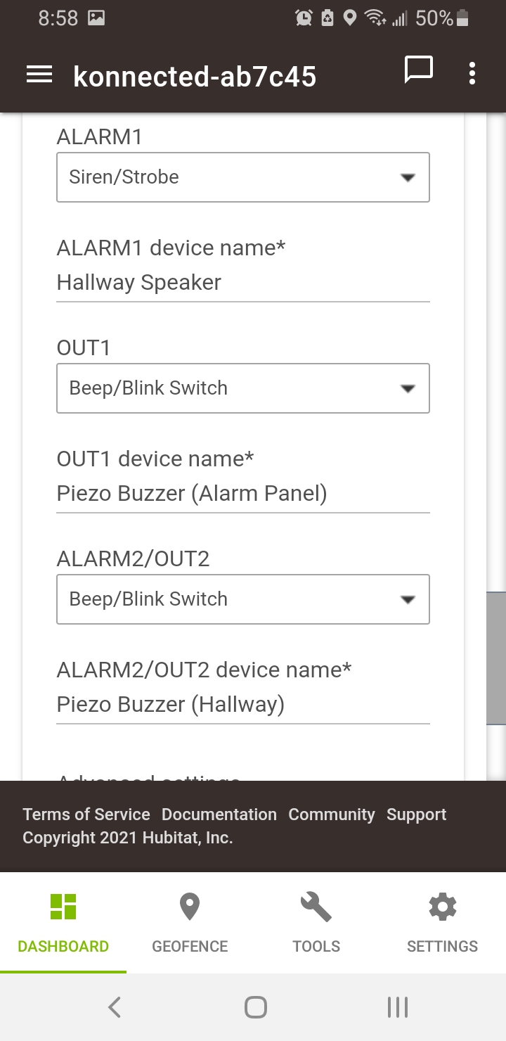 After the piezo buzzer is physically connected to the Konnected board, the rest is done in Hubitat.