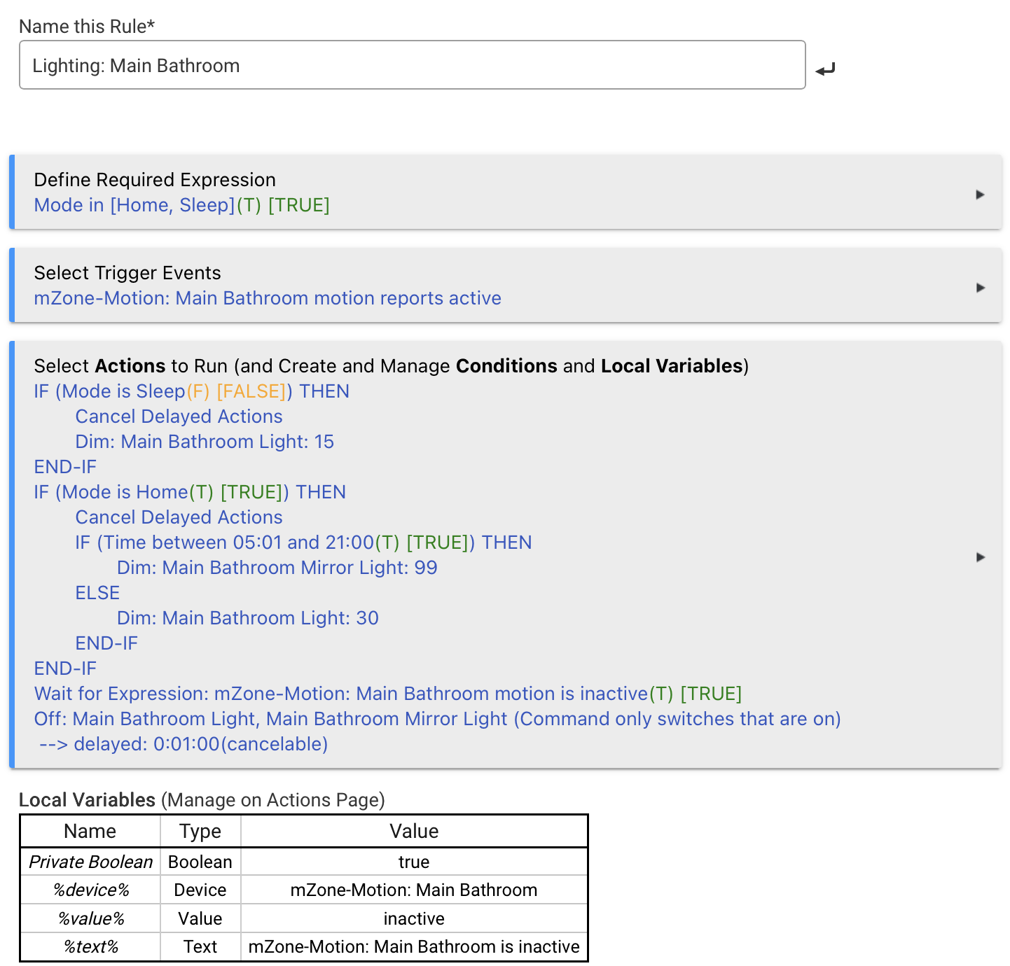 I plan on just tweaking the rule that turns the light on when motion is triggered to include time of day logic, but thought there may be a better way to do this. I want the light to turn on as quickly as possible. Right now the delay between motion and light on is almost zero. Don’t want any logic to cause awkward delays.