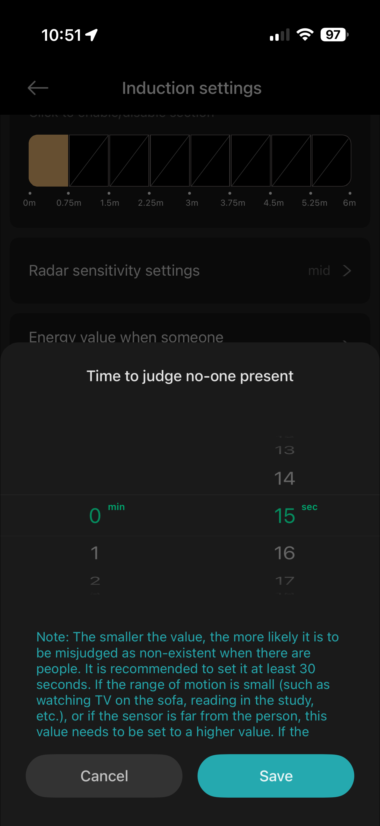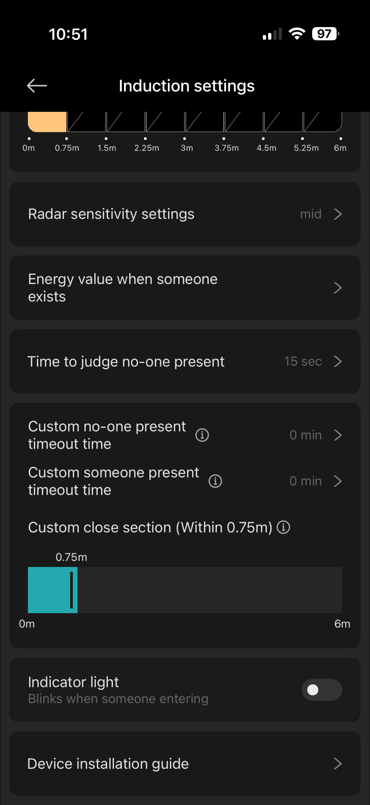 Settings have to be adjusted from the app with your phone connected to the device via bluetooth. This does not disrupt the existing pairing, and you just need to push the button on the device to reconnect it to your phone and make the adjustments you want. You can then disconnect and the device will keep working via the gateway or direct connection to HA.