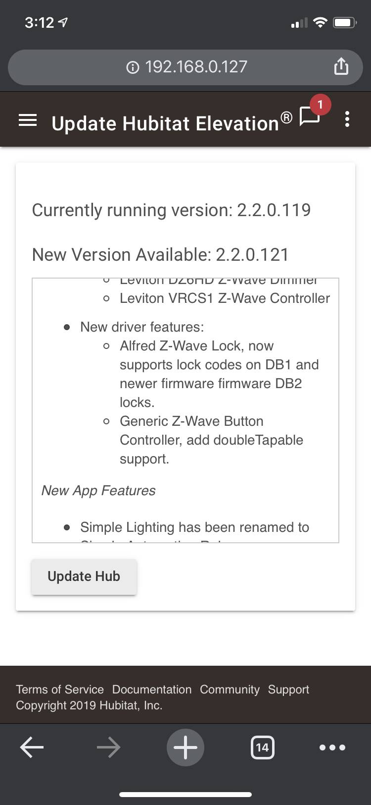 dev:3612020-04-21 11:32:57.703 pm debugcmd:NotificationReport(v1AlarmType:0, v1AlarmLevel:0, reserved:0, notificationStatus:255, notificationType:6, event:14, sequence:false, eventParametersLength:0, eventParameter:[])