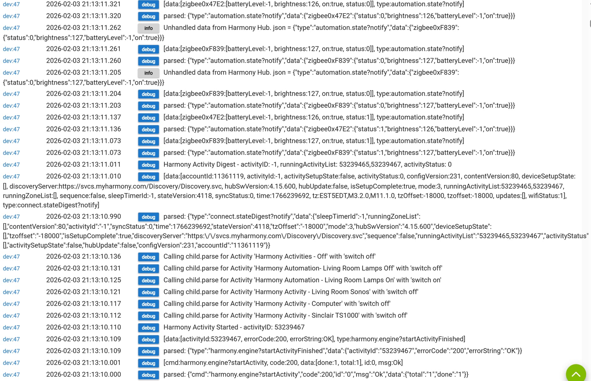 The Harmony Devices (I am using the two automations at the bottom of the list)...