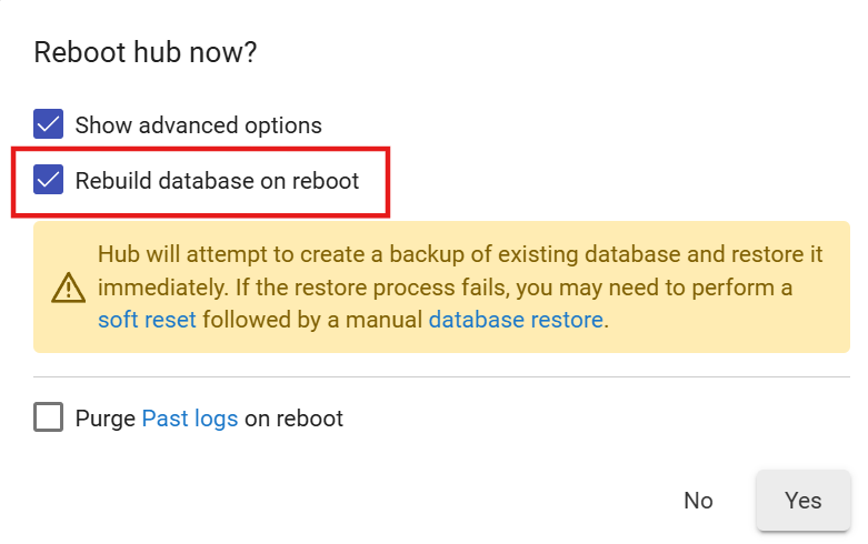 Have you tried rebooting your HE hub with the 'Show Advanced Options' and 'Rebuild Database on Reboot' both checked?