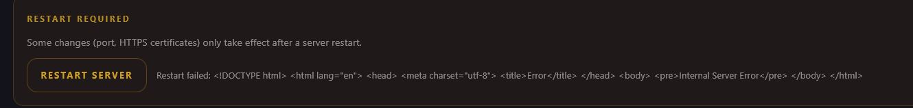 I will add an issue on the repo for the server restart. I hadn't paid much attention to that because I run standalone and just run a service CTL command to restart.. Thank you for pointing that out