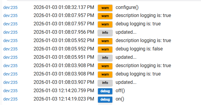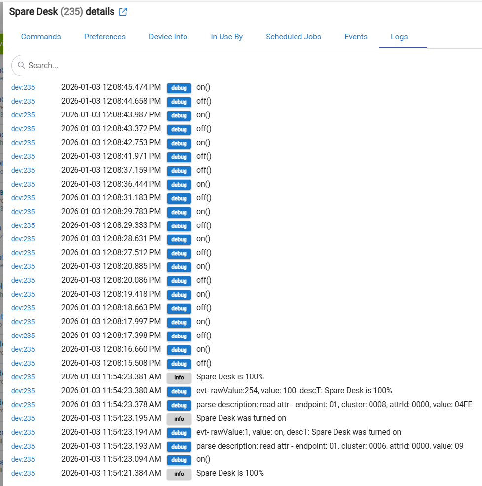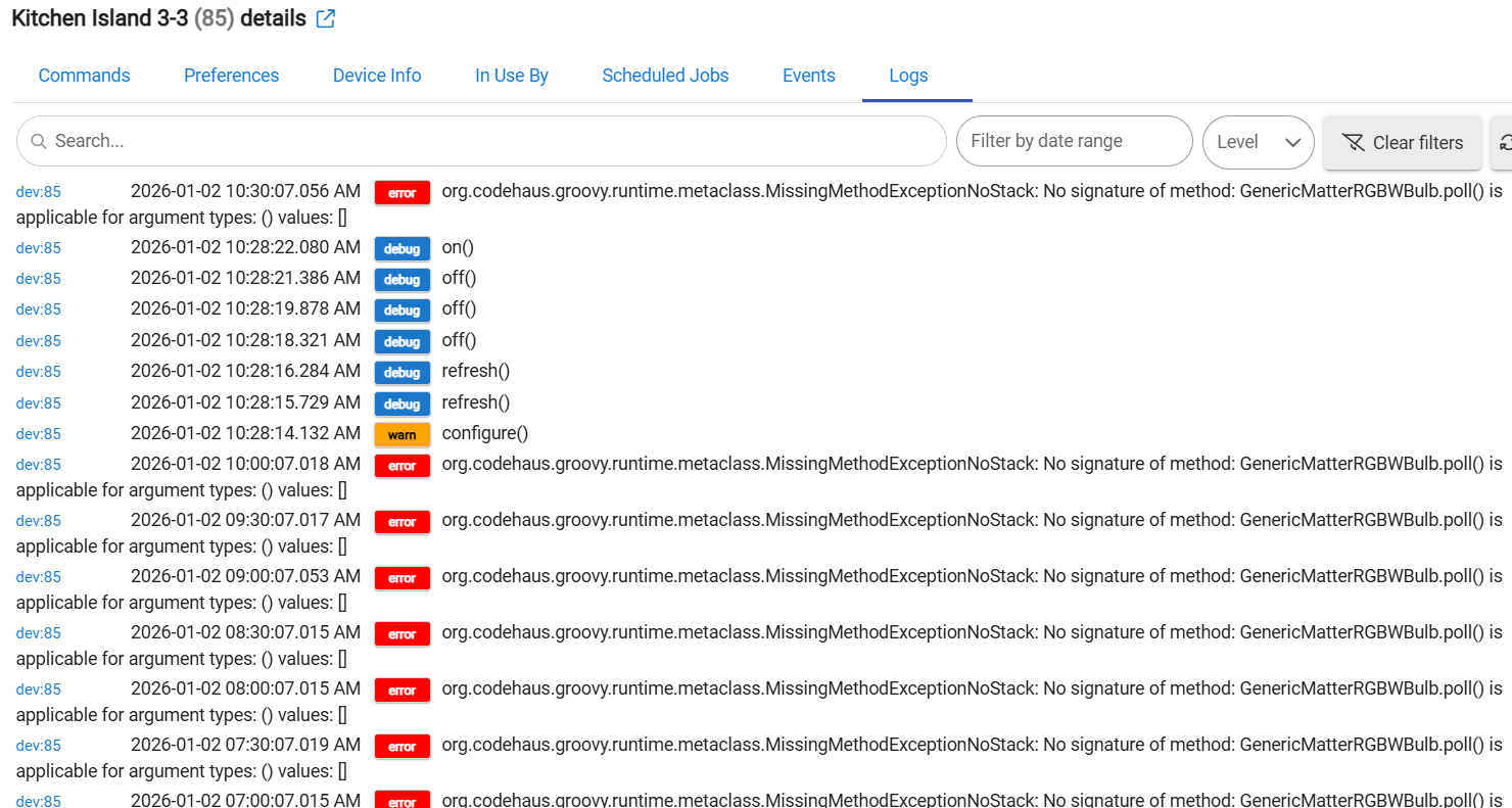 Here is a screenshot of the logs from one of them that is not responding to Hubitat