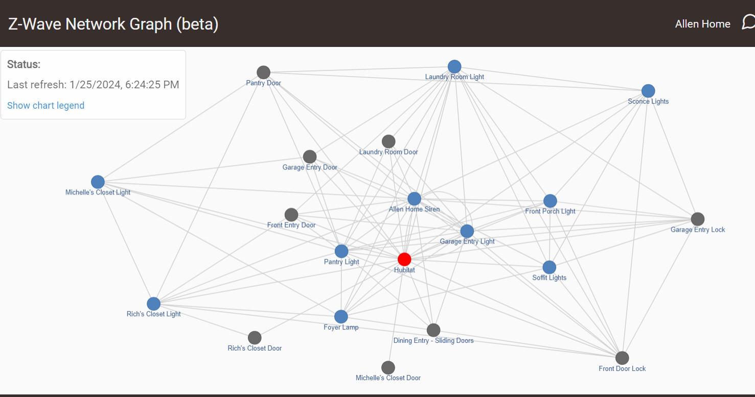 Here is the DEVICE GRAPH. Sorry, I didn't mention that I did have serval light switches installed. Lights are working great. I have other sensors that working flawlessly as well. Still having issues with the Aeotec DSB29-ZWUS and Everspring contact sensors. Also, both Locks are working fine. I just can't get the LOCK CODE MANAGER to work with the Kwikset lock. After I get a few more swiches installed, I'll try to re-pair (learn in) the Kwik set Lock again,