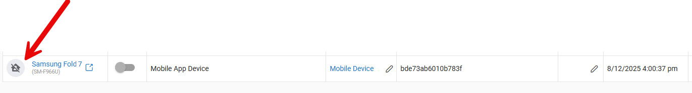 What you're pointing to is just a device status summary. In this case, the gray slashed icon just means the device is reporting away, i.e., not present. A green, non-slashed icon would mean present (or "home" as is often the meaning and the presumed intent of the base icon). If you don't have presence enabled in the mobile app, this would never change; if you do and it's not working, something else may be going on.
