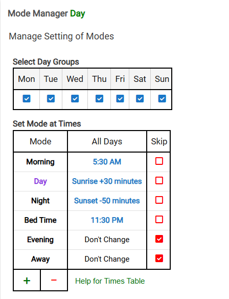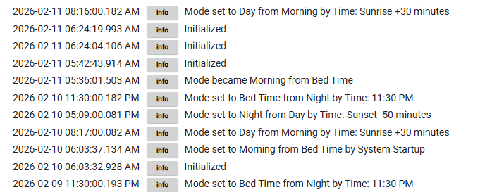 At the 5:30am mark in the logs you can see I manually put it in Morning Mode. Then at 8:16 it auto switched to Day
