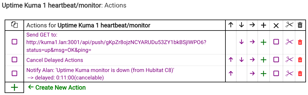So, every 5 minutes, the UK http monitor calls the Hubitat. The Hubitat calls back to Uptime Kuma push monitor and sets a cancelable delayed notification that will send if there isn't another inbound call within 11 minutes.