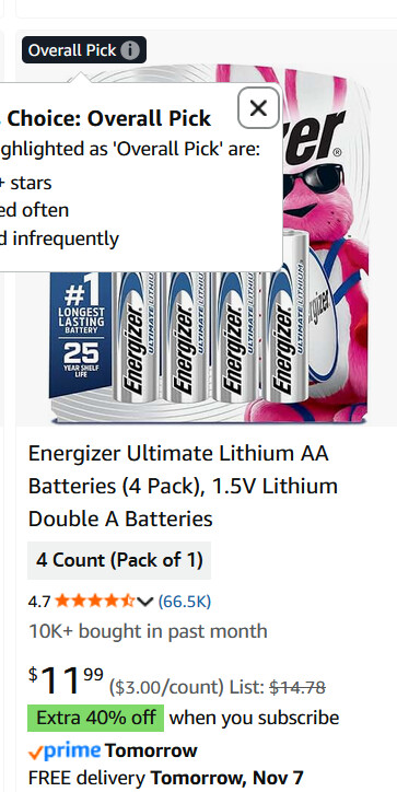 Regardless of battery type a 3-4 day draw down is seriously off. Lithium is in the order of 35% more capacity than alkaline so all things being equal my 3-4 day life with the Schlage lock would extend to 4-5 with lithium single use cells?!? That would be expensive to fund, 80 change outs a year @ almost $13 per would be $1,030/year.