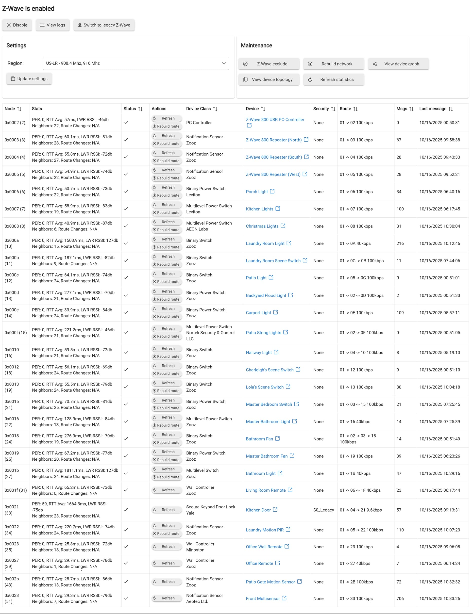 Laundry Room light 0A has a high RTT and a lot of messages. I am guessing it is automated in some fashion, going on and off a lot.