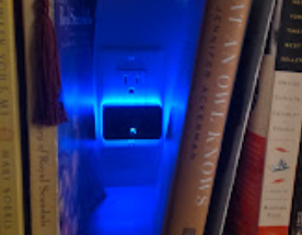 Testing it in a wall outlet that my wife has a small open-backed bookcase in front of.