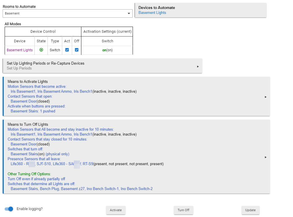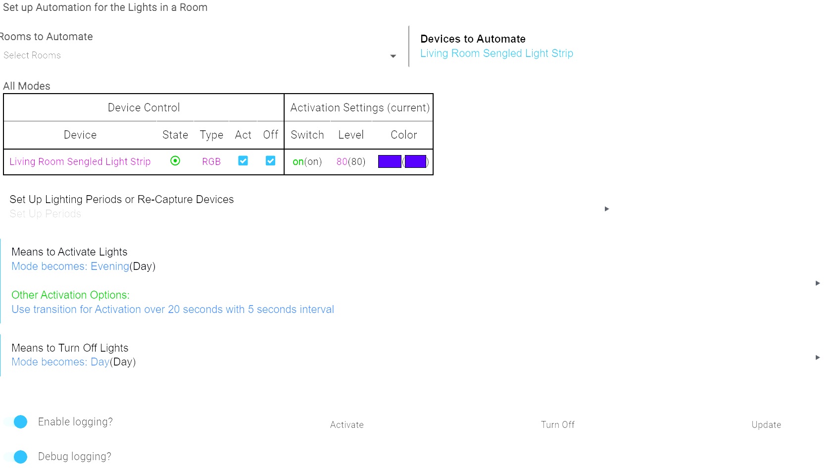 I have it mostly working but now it's turning the switch on an hour after it's turned off by the Room lighting automation. There is no "lighting periods" set. WTH?