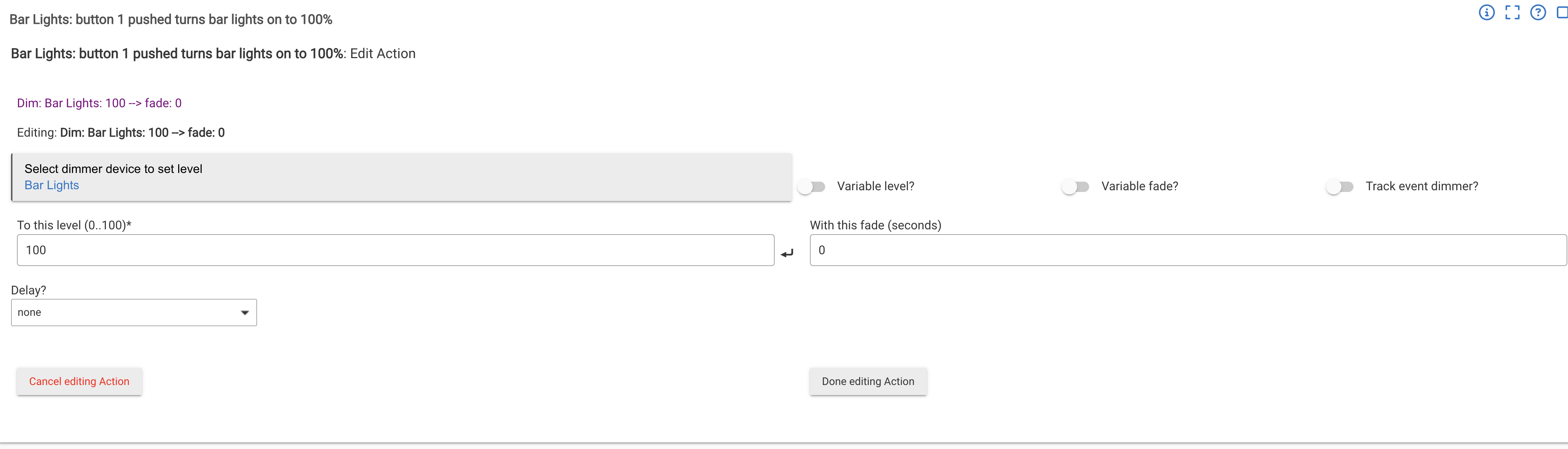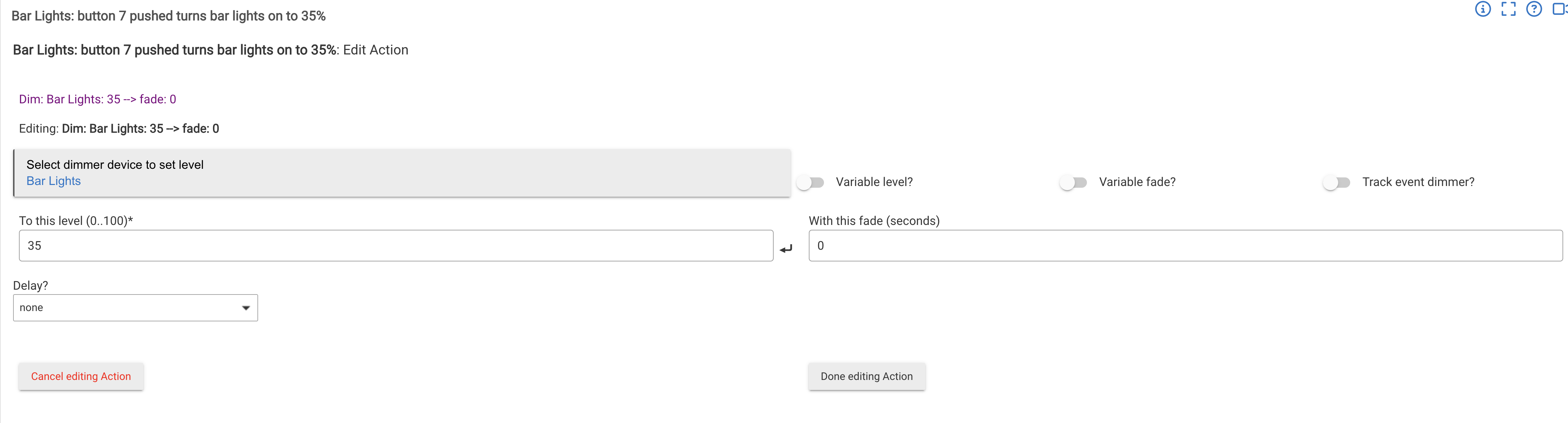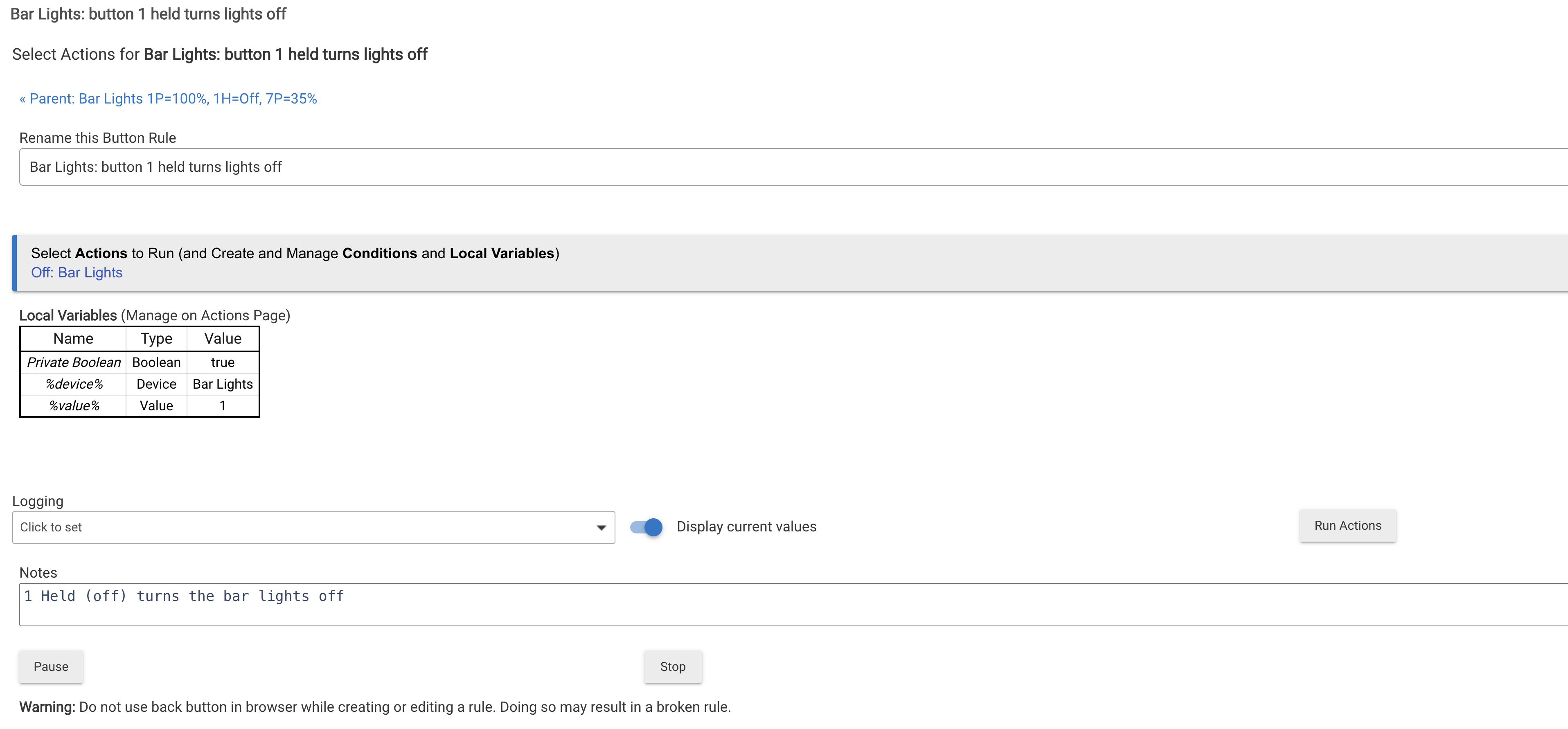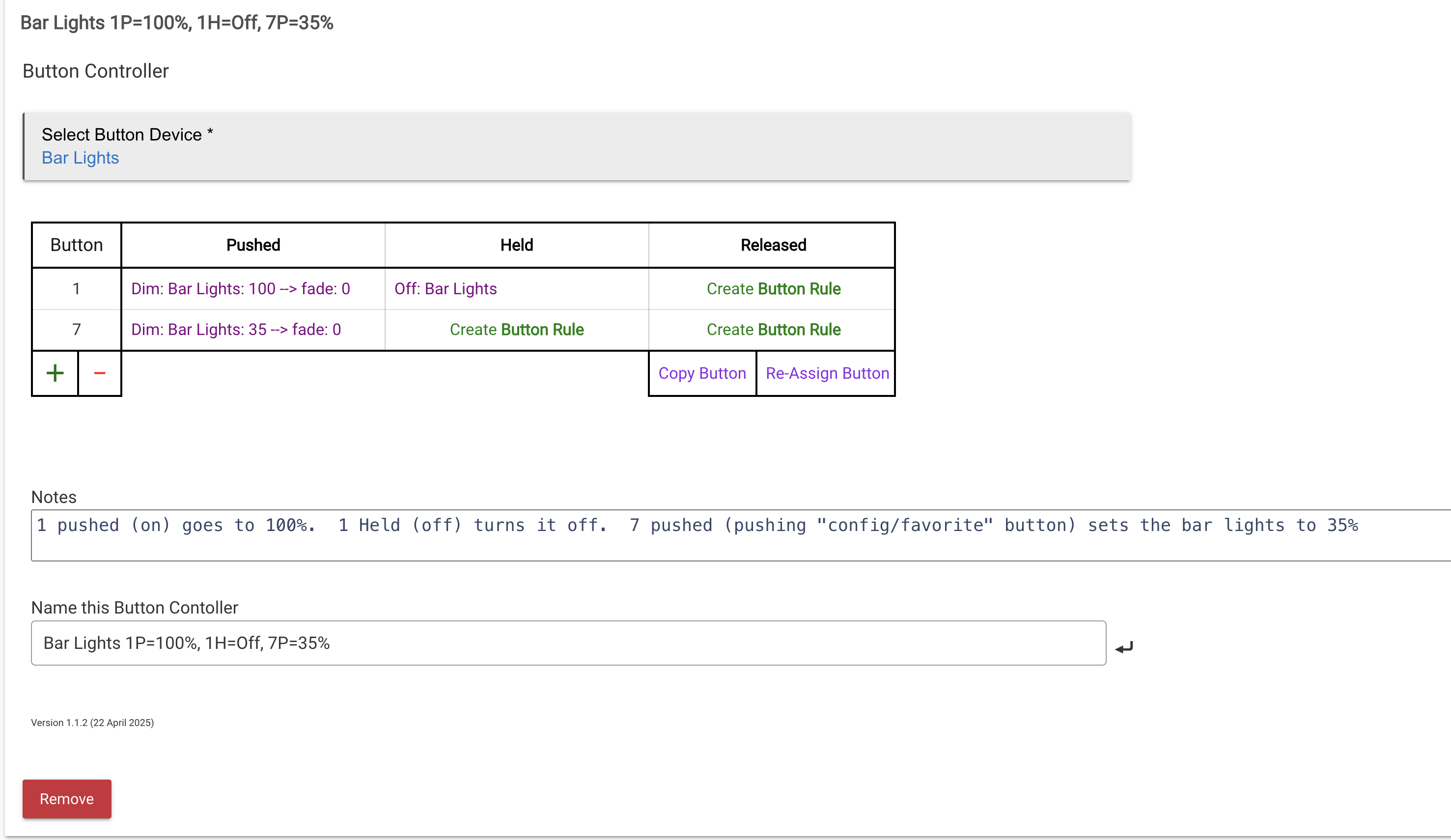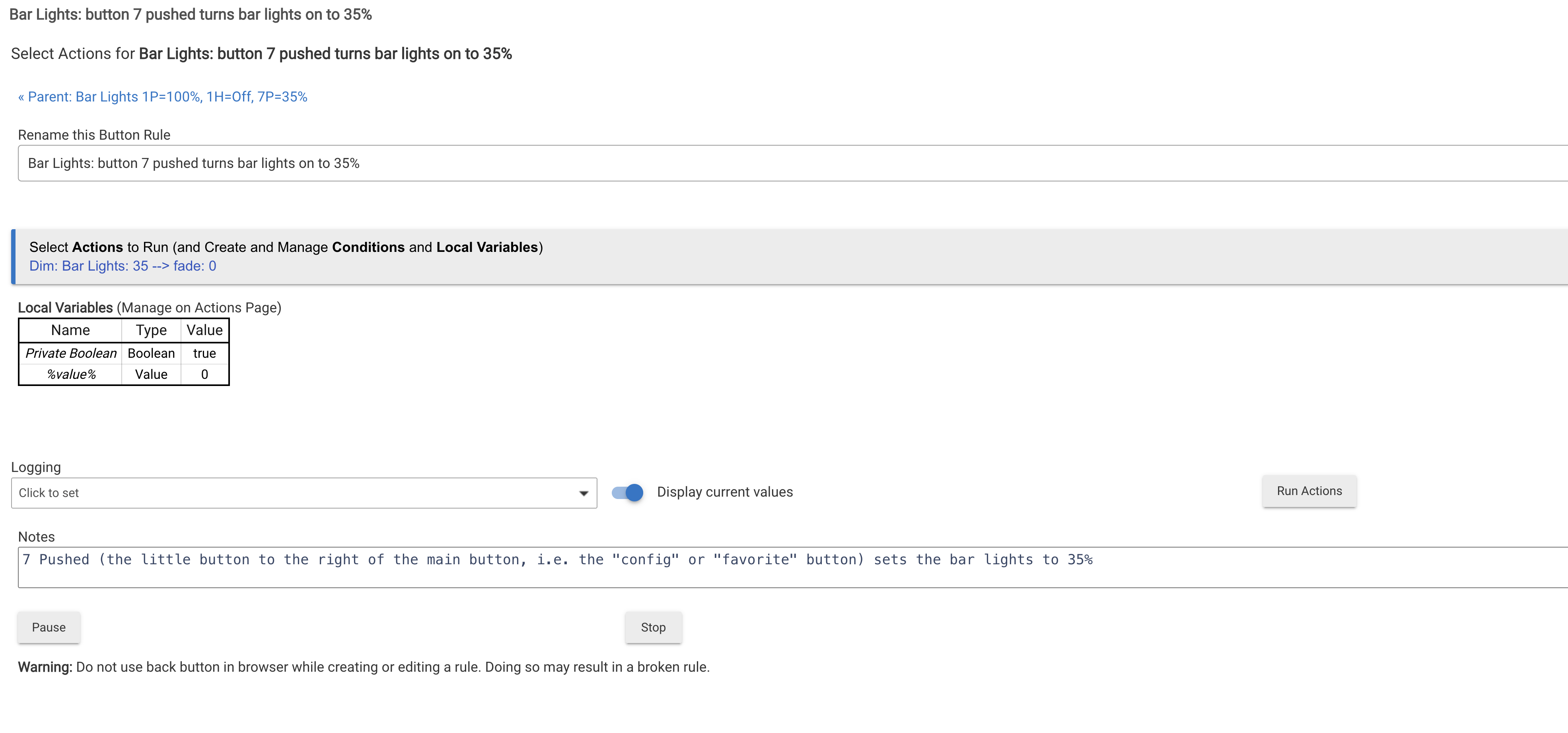 This shows what my Bar lights rule looks like in the Button Controllers app: