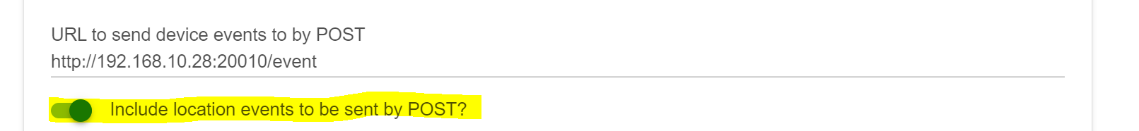 Scroll down to find your "URL to send device events to by POST"
