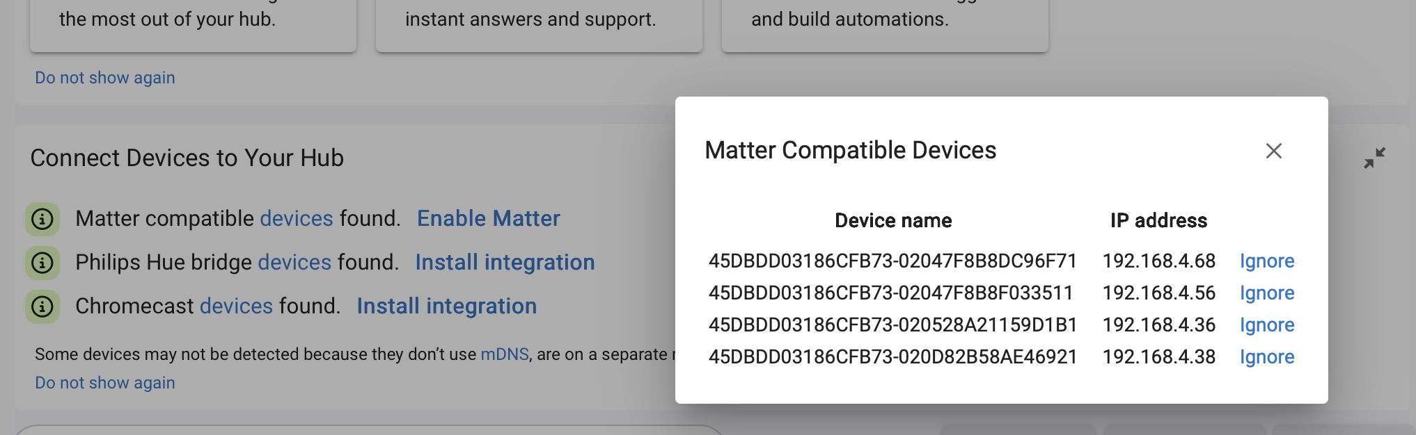Of course, if you have everything added to your hub that you want to be added, even if these are Matter-capable, they can just be ignored with the link next to each.