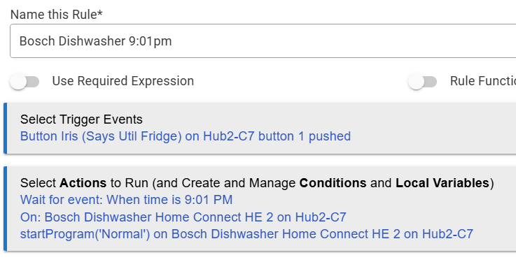 Is it currently working such that I should be able to kick off a wash cycle from a rule?