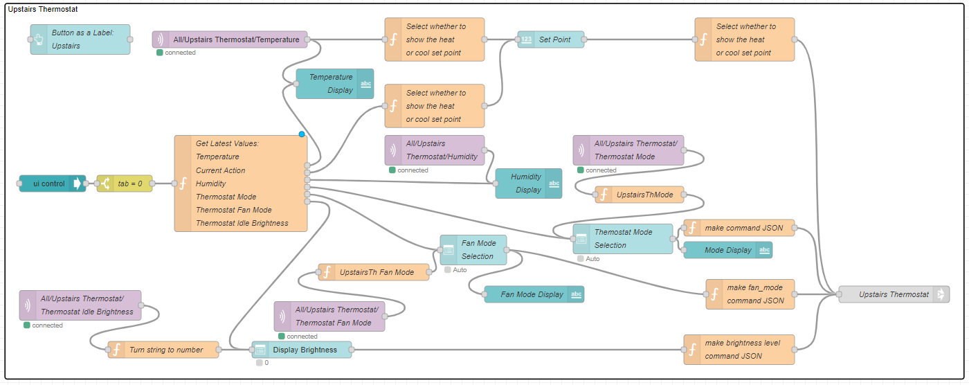 Just wanted to share something I just learned about something that can be done with a Node-Red Node's Name field. You can insert newline characters that will be reflected in the nodes display. Here is an example of my Node-Red Thermostat Dashboard where I was able to make my nodes much clearer to understand: