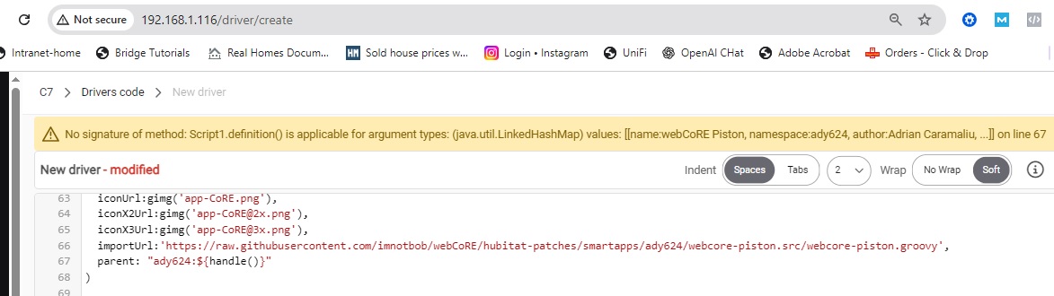 Looks like your manual import is trying to add a app to Drivers Code instead of Apps Code. And if you're updating it, it should already be there (and you can re-import) rather than adding a new.