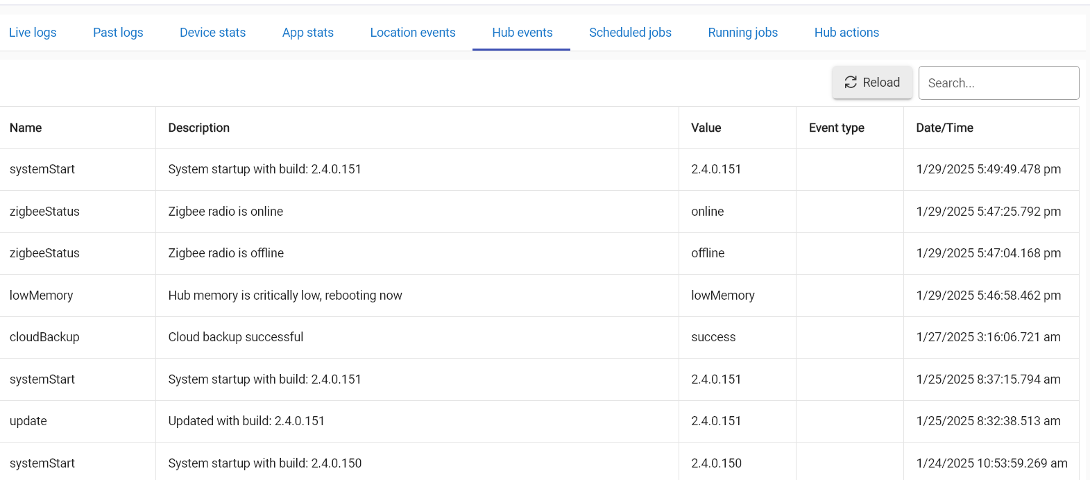 Basically the hub will come to crawl every 4-5 days unless rebooted. But there has not been anything in the logs or Device/App stats that I have been able to trace to a particular app/device causing the issue. So I was hoping @bcopeland or someone could take a look at the engineering logs incase I am missing something.
