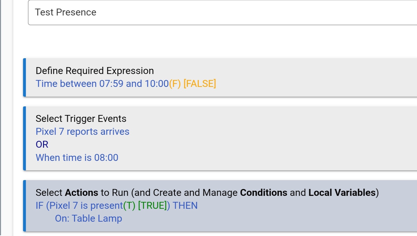 For example, between 8:00 AM and 10:00 PM, if presence is detected, turn switch on.