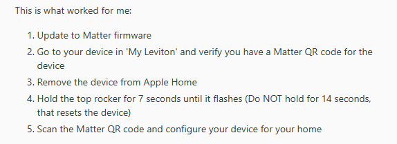 I installed my new C8 hub, connected via ethernet to my router (T-Mobile wireless router Nokia 5G21 Gateway). All good in set up and connecting a pair of zigbee roller shades. In trying to connect my existing leviton wireless dimmers, model D26HD, i am having problems connecting. Leviton has upgraded these dimmers to matter capable and that process installed correctly apparently. However, when i go through the connection process, with the matter code and the switch in sync mode, the switch loses its wifi connection to the network (with the flashing amber light on the switch). The hubitat connection stalls and eventually times out.