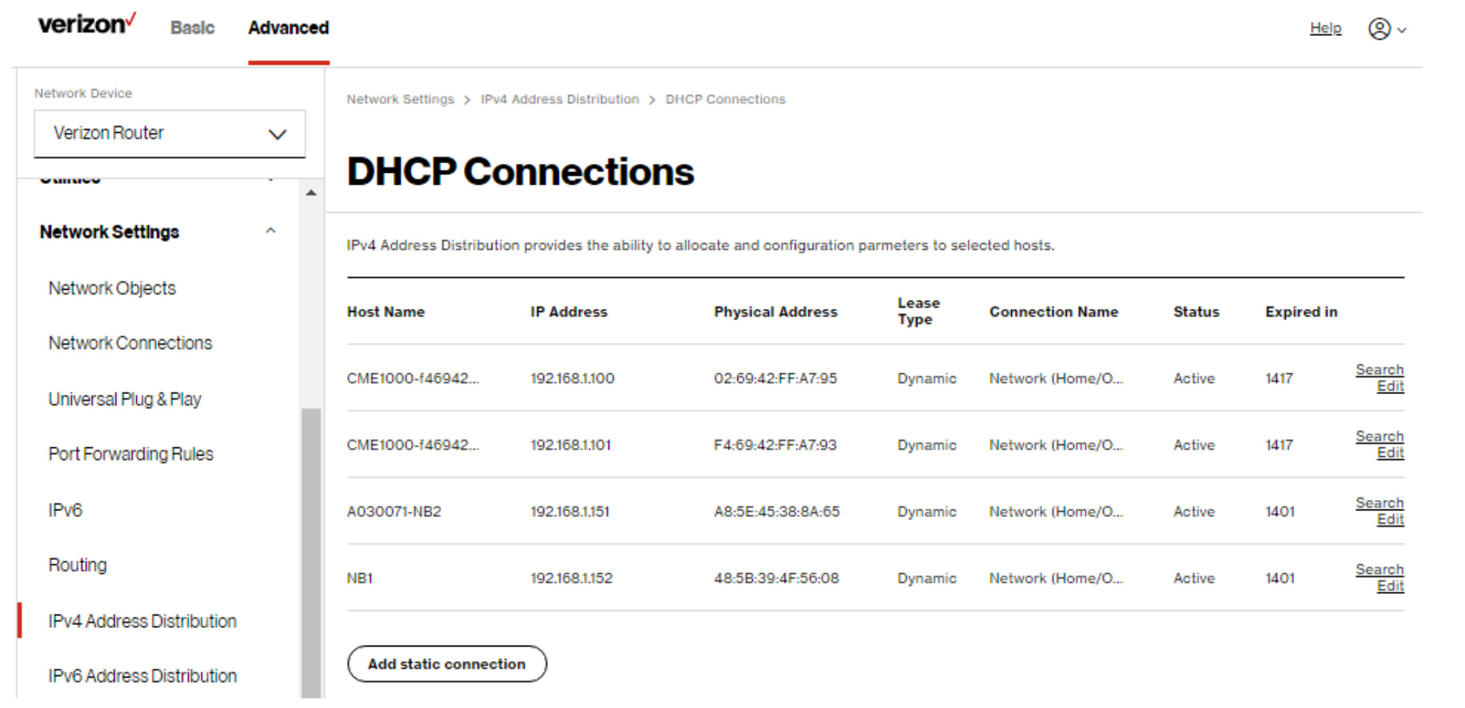 Can you snap a screenshot of where you got that so I can match it to what is in the manual. Do you see an option to click on a button to "Add Static connection" as shown in this image. That is from the user guide. Do you see in the image where it says "Dynamic". Does it say that or Static next to the hub?