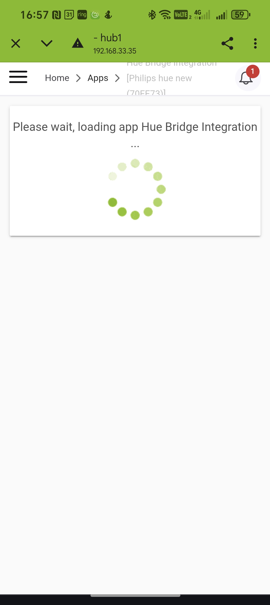 My hue bulbs seem to function fine after the 2.4.0 upgrade but when I go into the integrated hue app, it never progresses beyond this:
